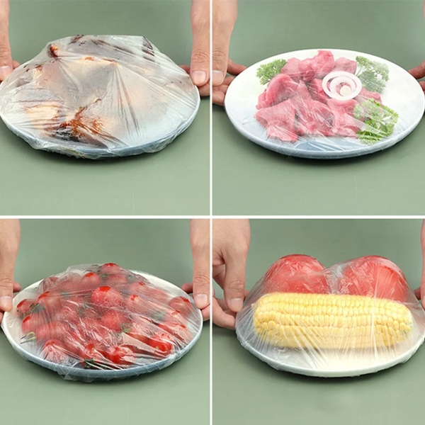 የላስቲክ የምግብ መሸፈኛዎች። በሳህኖች እና በምግብ ማቅረቢያዎች ላይ ይለጠጣሉ። ምግብን ትኩስ ያደርጋሉ።